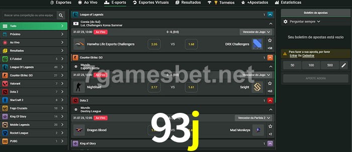 O 93j oferece uma grande seleção de opções de apostas em e-sports com probabilidades competitivas